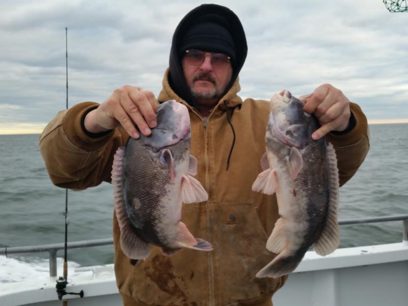 11-17-14 WE got out today with pretty nice conditions again,,flat calm for the most part...Fishing was slow for us at first...few fish nothing really happening,,,we ended up in an area where there was decent life,,some keepers but nothing exciting,,It was alot of fish it seemed like that went 14 inches...We picked through them for a while and ended up leaving to try and find better life for some bigger fish,,,WE ended up picking some nicer fish later in the day but overall it was not good for alot onboard,,,,Skip did have a limit of nice Togs and took home both pools....just couldnt get everyone dialed in like him..They were there though,,,gonna have to go back tomorrow and get em!!!!See ya in the morning,,we got hard west winds again like yesterday it should be good...See ya in the morning...pics