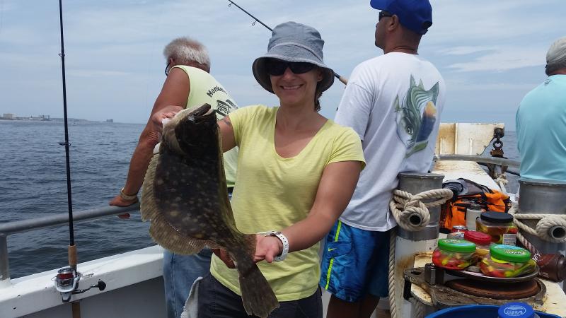 7-6-15 Very nice day today and the fish were chewing,,again alot of shorts coming up most places,,,some guys were dialed in and got into some nice fish,,Skip was hot today with a limit plus of nice fluke in the 3-6lb.range,,some guys were just into the shorts and others had a few keepers each,,,Glo gulp in the big mullets was a hot color today along with the jigs,,,,check out some pics..tomorrow looks great again..see ya then.