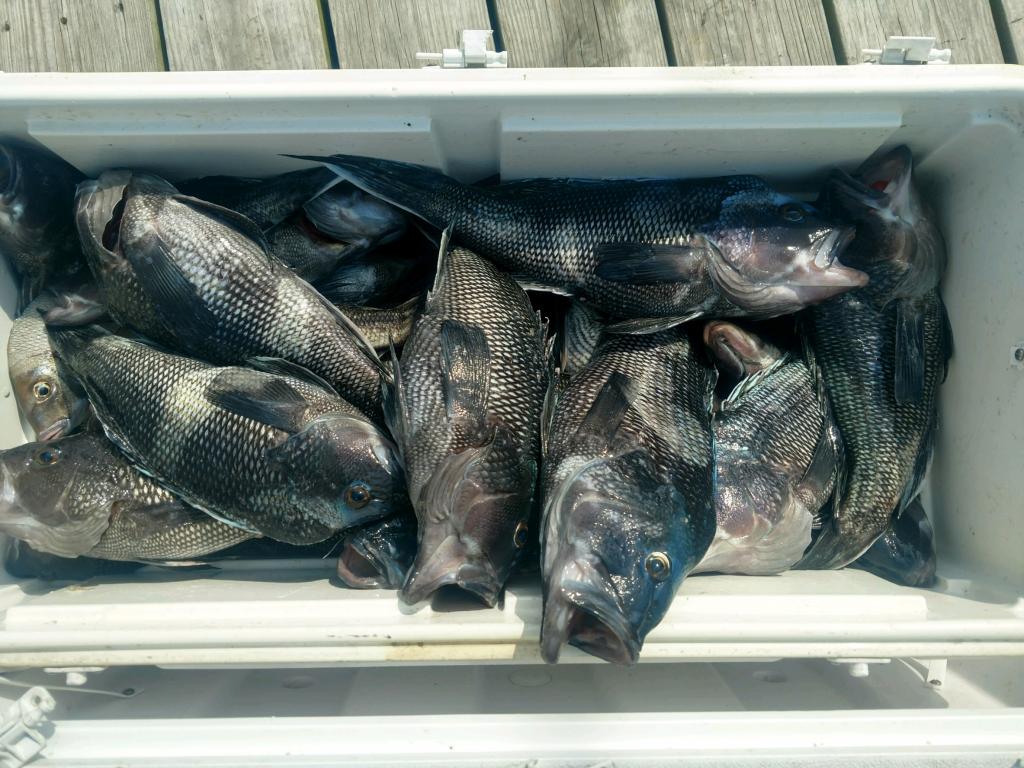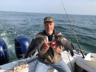 Had T.J, Jim, Joe and Scott out today for a seabass charter. Stayed close to home for a while with great action and lots of keepers. As soon as other boats showed up the action slowed. We decided to run to our usual spot and it was game on. Ended up with a five guy limit of nice knot heads. An occasional ling was a bonus and it was nice to catch a porgy. The 10 fish per man limit closes in two weeks. Give us a call. 732-496-0401. We have some dates still available.