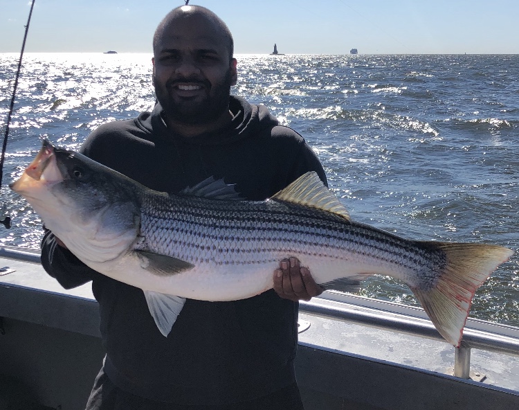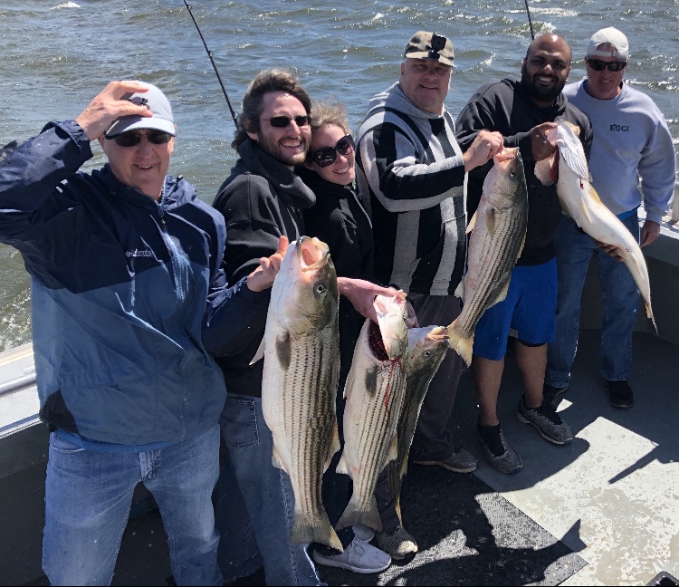 Today aboard the Down Deep Bull we ran another 6am open boat Raritan Bay Striped Bass trip with a great bunch of guys and gal. We picked a few all day long as the wind gained momentum as well. The crew deck beautiful Stripers and a lone Bluefish. Minus the wind, it would have been another excellent day. Check our open boat schedules as we now mix it up daily. Taking a pass on Fluke tomorrow, we will be Seabassing, can’t pass up the great bottom fishing we have. Special Seabass trips sailing daily at 5:30 am and Jumbo Fluke trips will begin the upcoming week at 6 am. Get the crew together, pick a day and let our true drift Downeaster put you over your PB Fluke. *Sunday May 26 - 5:30am Jumbo Seabass, book now get right on them. Thanks everyone for sailing with us, and all others who continue to book their trips going forward at a rapid pace. Don’t miss the next open boat trips and fish in comfort like a gentleman and get right on em -