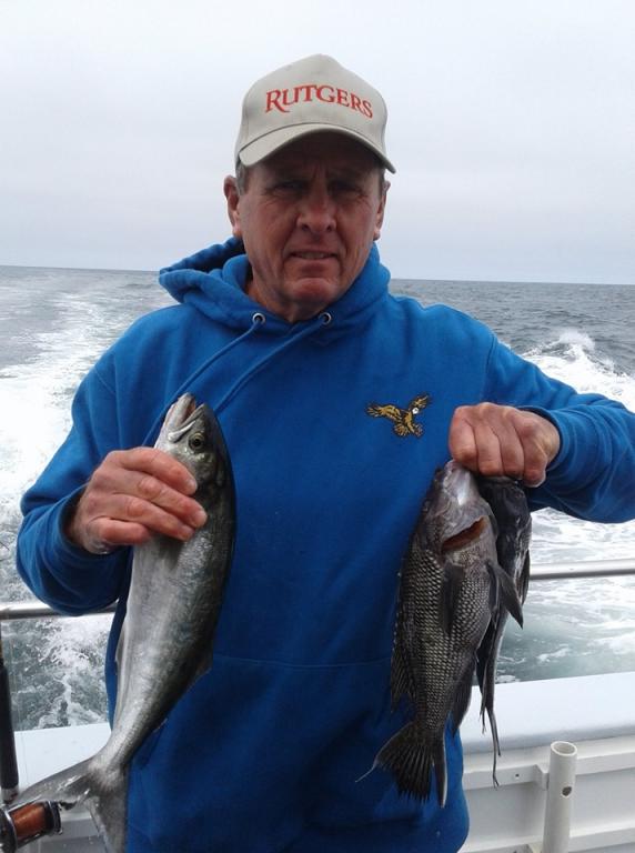 It was another nice day on the ocean in spite of the cool wind and clouds. We had near limits of BLUES which were on the small side but with light tackle, everyone had a blast. We chased the BLUES from Shark River to Sea Girt and had DECENT action on most of the drifts. We went off to the SEA BASS grounds when the BLUES slowed and had some DECENT action with the SEA BASS too, although it was much better for us with the BLUEFISH.