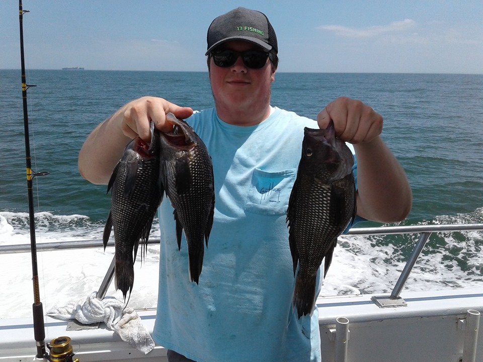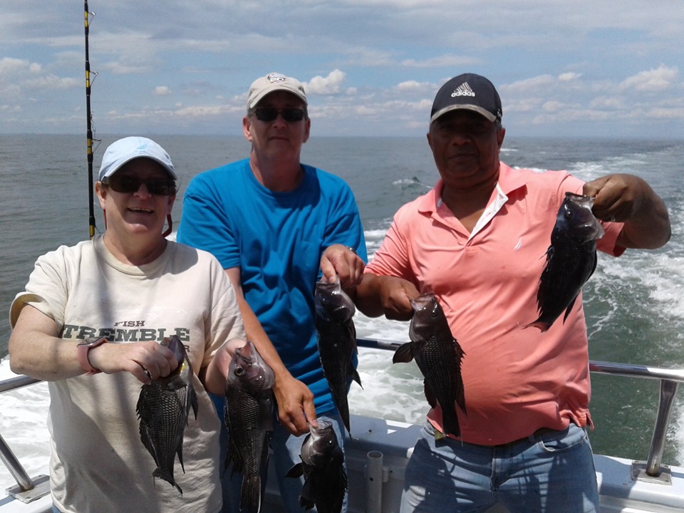 It turned out to be a gorgeous day on the ocean today and we worked hard trying to catch the BLUEFISH but they would not cooperate so we went off to the SEA BASS grounds. It was GOOD action all day with the SEA BASS and people had a lot of fun.