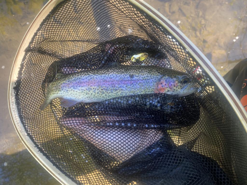 Went to the klg to do some fishing with my buddies, couple of fish here and there but caught a nice brown by the rocks. Downstream at the meat hole fish were all over the place, slayed them on the black and gold panther Martin. Went upstream to fish the more stocked waters and absolutely killed them! 15+ trout total out of one hole!