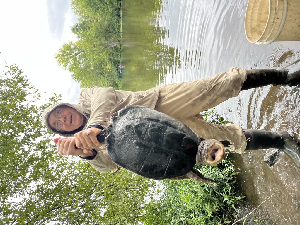 Went carping in 79 degree Carnegie Lake this evening on a hot, humid, cloudy day with a moderate east wind. 4 intruders were in my spot so I fished on the Aqueduct until one of them fell into the lake. Karma is real. After they started fishing 🎣 to my right, I moved to my spot. Saw a fisherman catch and release a 3 lb bass. I caught and released 3 black crappies and a white perch with an orange 1/32 oz Big Eye jig and 1” purple twister tail on 2 lb test line. Found half a can of DelMonte whole kernel corn 🌽, then threw it into the lake. Caught and released 6 bluegills and a 22 lb snapping turtle 🐢. Landed 104 turtles this year. Only killed one mosquito 🦟. Got bit. Saw a great blue heron catch and swallow bluegills in my spot. Osprey were fishing nearby. Caught more than 2,500 fish 🐠 in NJ this year.