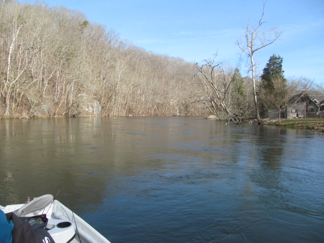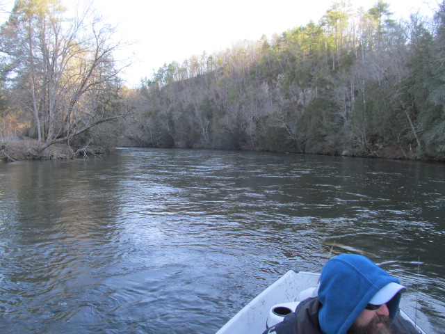 Thursday January 17th I hit the banks of the South Holston river near Bristol Tennessee. Had very high hopes after doing my homework,fished the ever-so-strange weir area. Fished hard most of the day and put in my time with nothing much to show for it. Place was a bustle with fishermen, some dead sticking corn, others fly fishing, others throwing bobbers with live bait. Placed looked very fishy, but I couldn't connect during the balmy 57* afternoon. Since I did so poorly I decided to hit the fly shop by the river and see if I could book a float trip last minute, they said sure !!