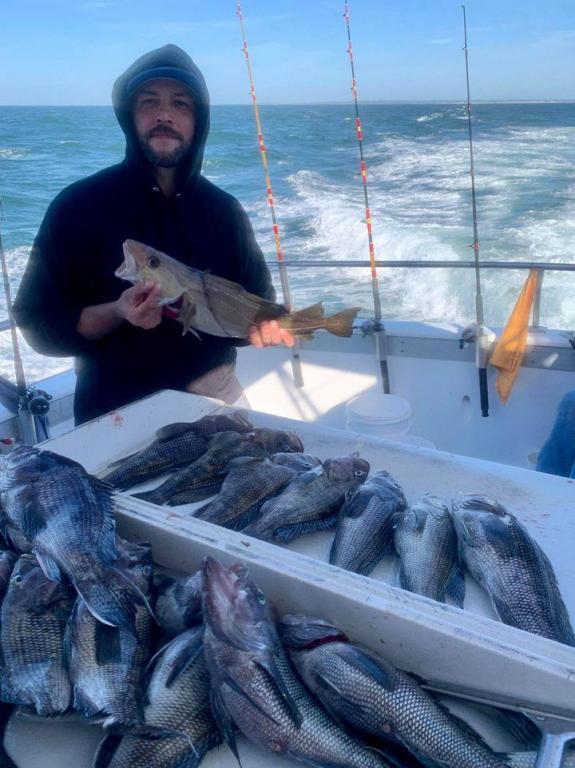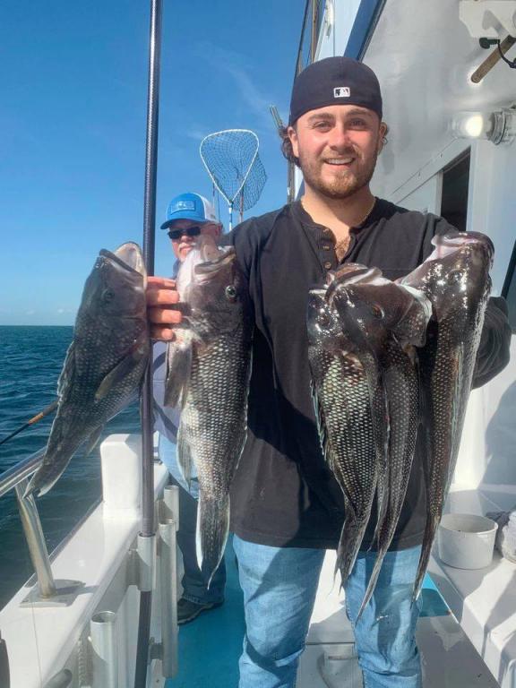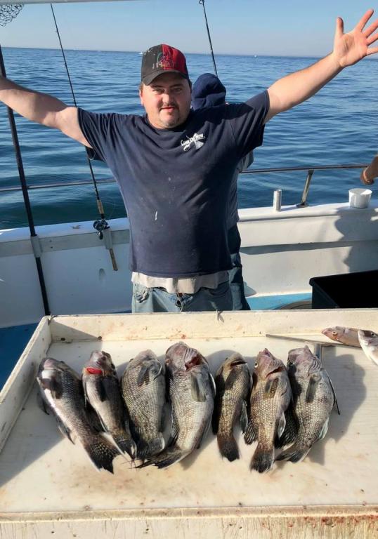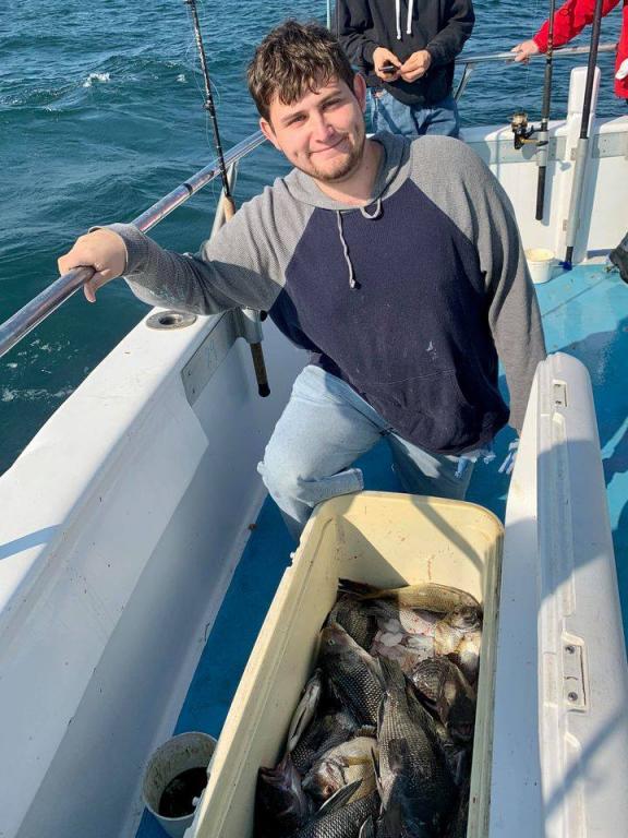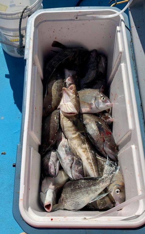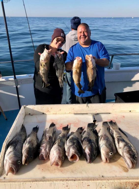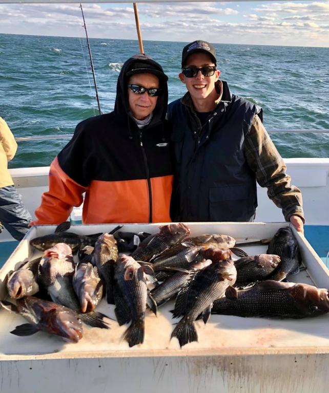 Onboard the Miss Montauk II ~ A very good Fall day of fishing Sunday! A nice mixed bag ~ SeaBass, Cod, & BlackFish. Asher had the pool with a nice BlackFish! Now taking reservations for our Fall trips #631-668-1545. We Are Fall Bottom Fishing for SeaBass, BlackFish, & Cod 6AM-4PM ~ Wednesdays, Thursdays, Fridays, Saturdays, & Sundays $140. LIMITED TO 30 ANGLERS by RESERVATION