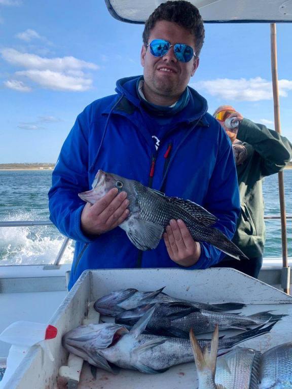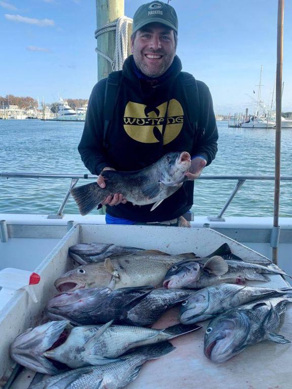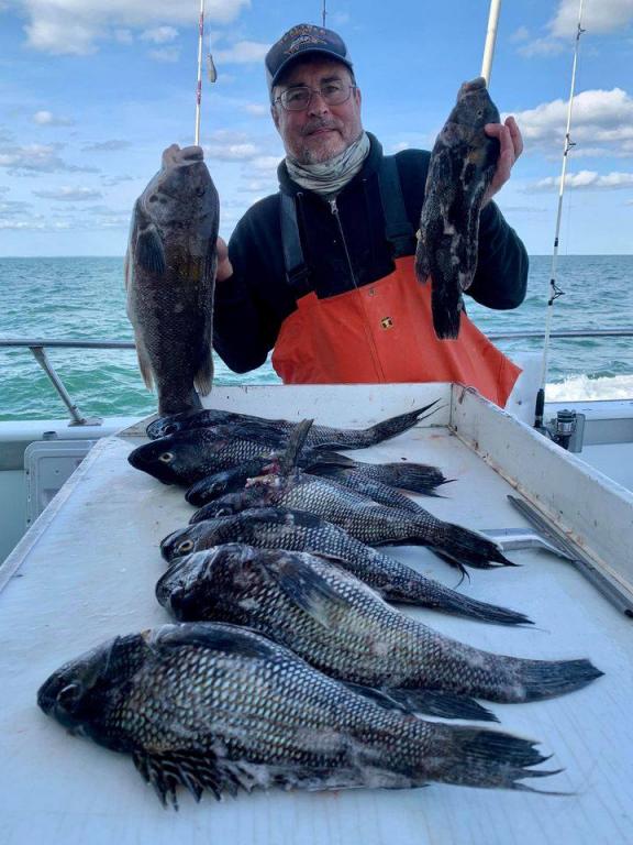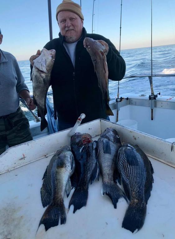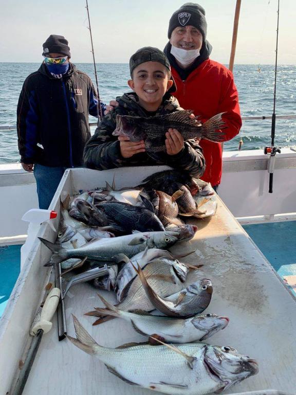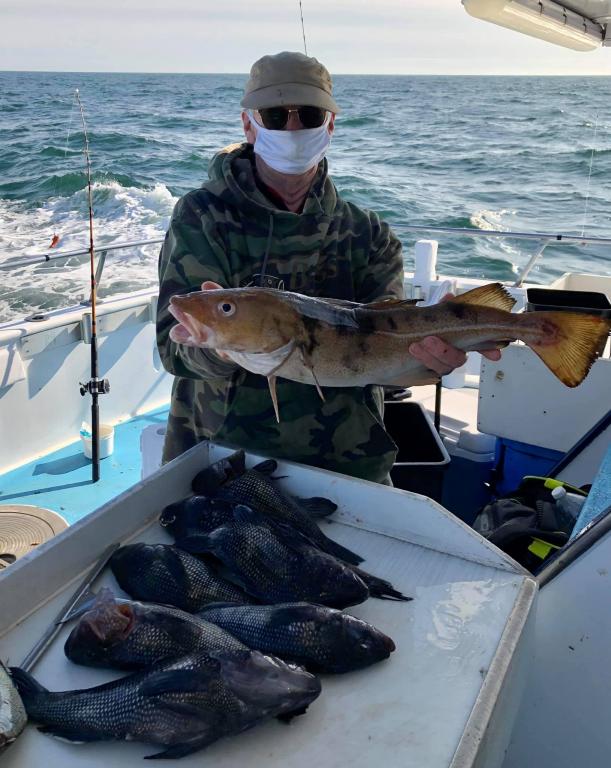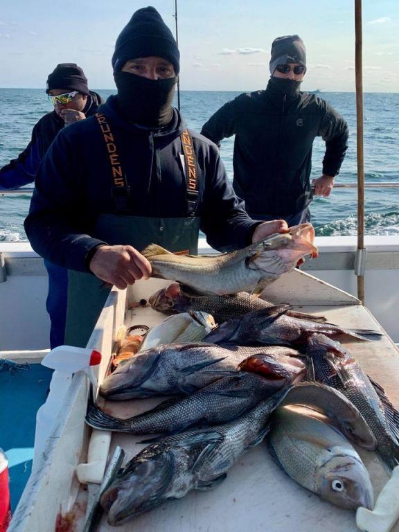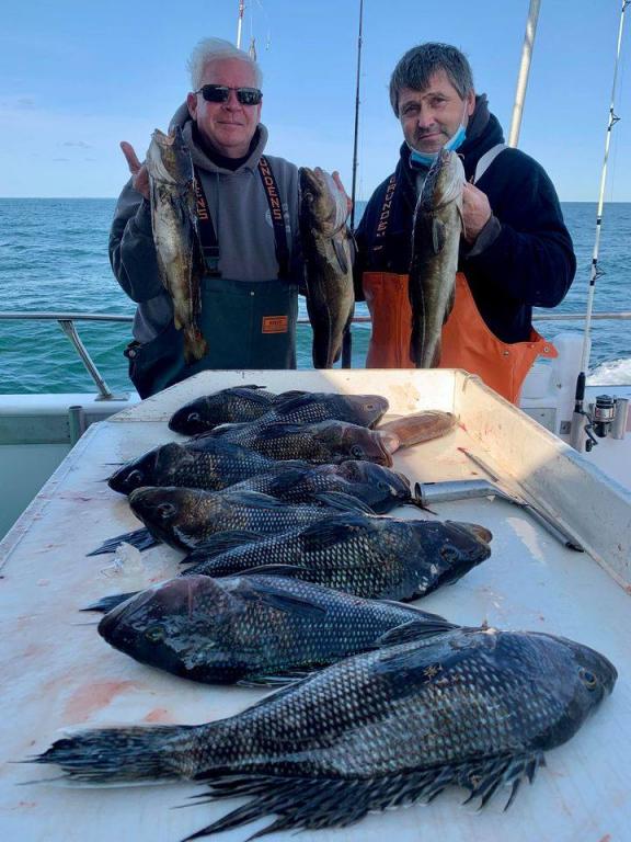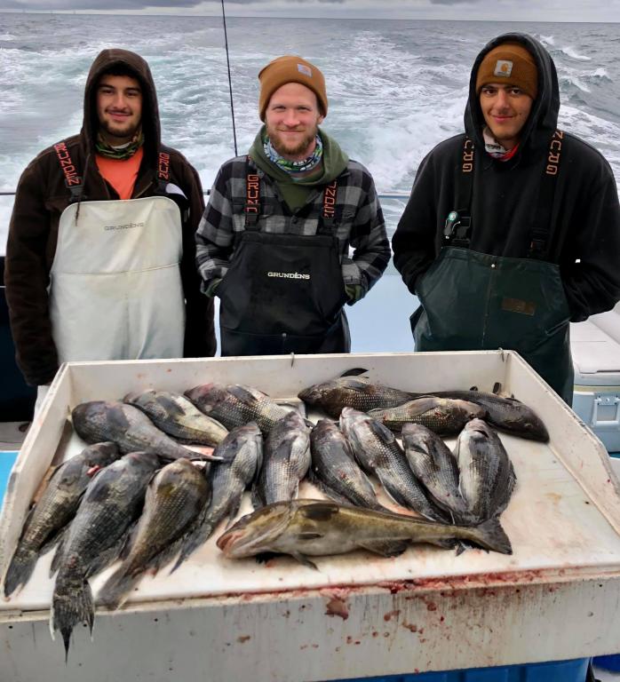 Onboard the Miss Montauk II 11-14-2020 ~ A very good day of fall fishing Saturday ~ a very nice mixed bag of fall fishing! Ian took the pool with a beautiful BlackFish! Our Fall Bottom Fishing Trips are for SeaBass, BlackFish, & Cod 6AM-4PM ~ Wednesdays, Thursdays, Fridays, Saturdays, & Sundays $140. LIMITED TO 30 ANGLERS by RESERVATION #631-668-1545