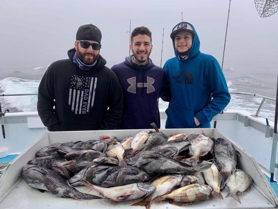 We Are Fall Bottom Fishing for SeaBass, BlackFish, & Cod 6AM-4PM ~ Wednesdays, Thursdays, Fridays, Saturdays, & Sundays $140. LIMITED TO 30 ANGLERS by RESERVATION Monday Wreck Trips 5AM-8PM begin Monday, October 26th $180. LIMITED TO 25 ANGLERS by RESERVATION |