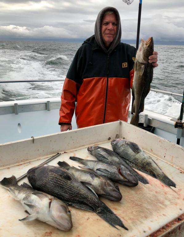 Onboard the Miss Montauk II ~ A nice mixed bag of fishing on Wednesday ~ SeaBass, Cod, & BlackFish. Jim’s Knothead SeaBass took the pool! Now taking reservations for our Fall trips #631-668-1545. We Are Fall Bottom Fishing for SeaBass, BlackFish, & Cod 6AM-4PM ~ Wednesdays, Thursdays, Fridays, Saturdays, & Sundays $140. LIMITED TO 30 ANGLERS by RESERVATION