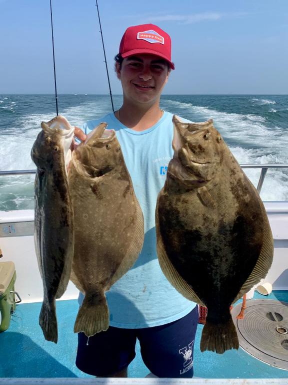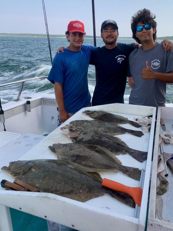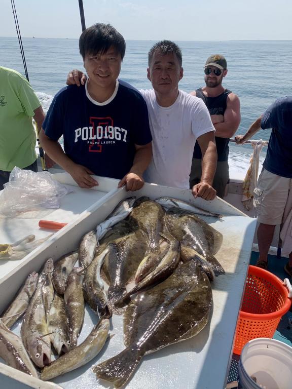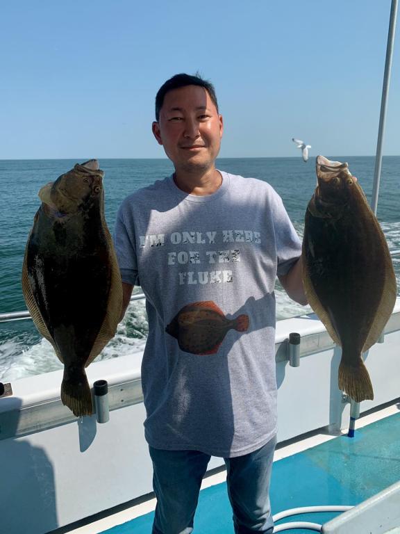 ![]() Onboard the Miss Montauk ~ Cameron had Saturday’s pool winning Fluke ~ Awesome! And Chris had Friday’s ~ Nice! We are taking reservations for our FULL DAY FLUKE TRIPS 7AM - 4PM $130 ~ Limited To 45 Anglers AND our 12 Hr WONDERWORLD TRIPS 6AM - 6PM $195 ~ Limited to 30 Anglers. All trips are by reservation #631-668-1545