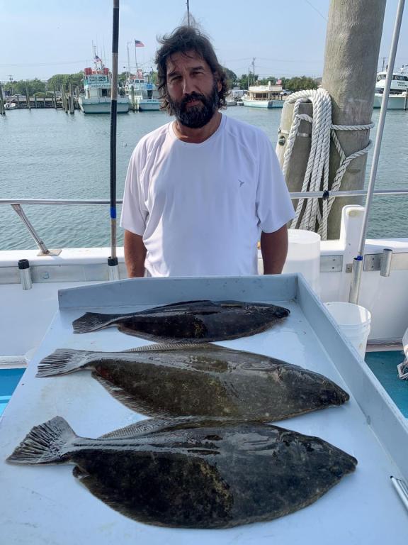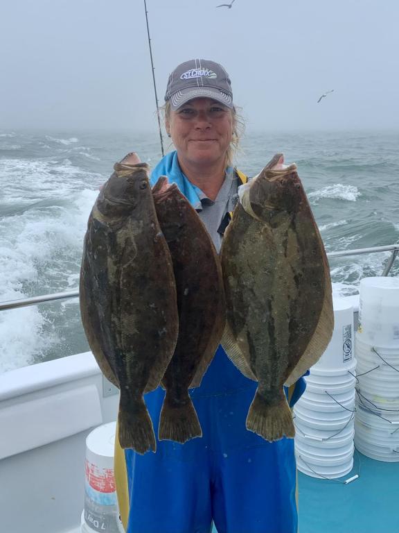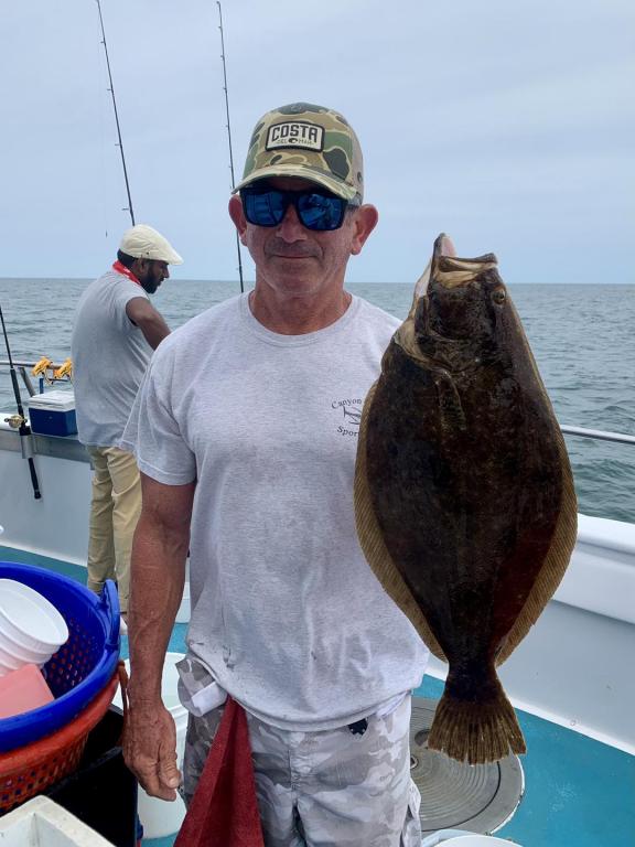 ![]() Onboard the Miss Montauk ~ Chris had Tuesday’s pool winning Fluke ~ Sweet! The weathermen got the forecast wrong, but we managed an ok day. We are taking reservations for our FULL DAY FLUKE TRIPS 7AM - 4PM $130 ~ Limited To 45 Anglers AND our 12 Hr WONDERWORLD TRIPS 6AM - 6PM $195 ~ Limited to 30 Anglers. All trips are by reservation #631-668-1545