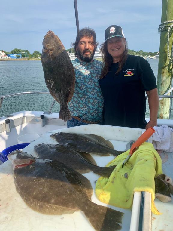 ![]() Onboard the Miss Montauk ~ Sal had today’s pool winning Fluke and Mike had yesterday’s pool Fluke ~ Very Nice! We are taking reservations for our FULL DAY FLUKE TRIPS 7AM - 4PM $130 ~ Limited To 45 Anglers AND our 12 Hr WONDERWORLD TRIPS 6AM - 6PM $195 ~ Limited to 30 Anglers. All trips are by reservation #631-668-1545