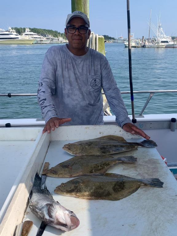 ![]() Onboard the Miss Montauk ~ Phil had today’s pool winning Fluke ~ Sweet! We are taking reservations for our FULL DAY FLUKE TRIPS 7AM - 4PM $130 ~ Limited To 45 Anglers AND our 12 Hr WONDERWORLD TRIPS 6AM - 6PM $195 ~ Limited to 30 Anglers. All trips are by reservation #631-668-1545