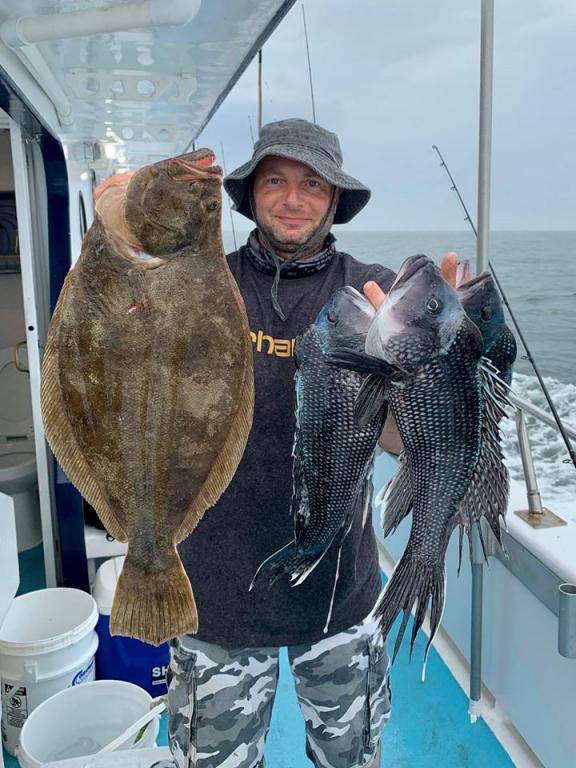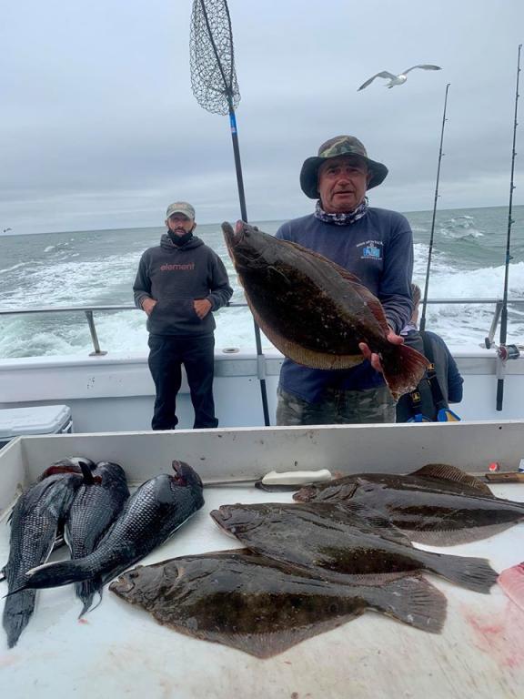 ![]() Onboard the Miss Montauk II ~ Sal had today’s pool winning DOORMAT Fluke weighing in at 10.26 lbs ~ Fluketastic!! Runner up was Walter’s 9.6 lber, he also had his limit of Fluke & SeaBass ~ Sweet! Tough day for some, but some had quality fluke.