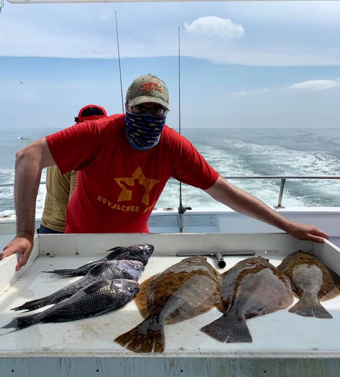 Onboard the Miss Montauk II ~ the Norwegians had the largest Fluke today 😂 Pete had the pool winning Fluke weighing in at 7.3 lbs ~ Sweet! I got to fish and had an 8.7 lber that was very fun! A good day today!