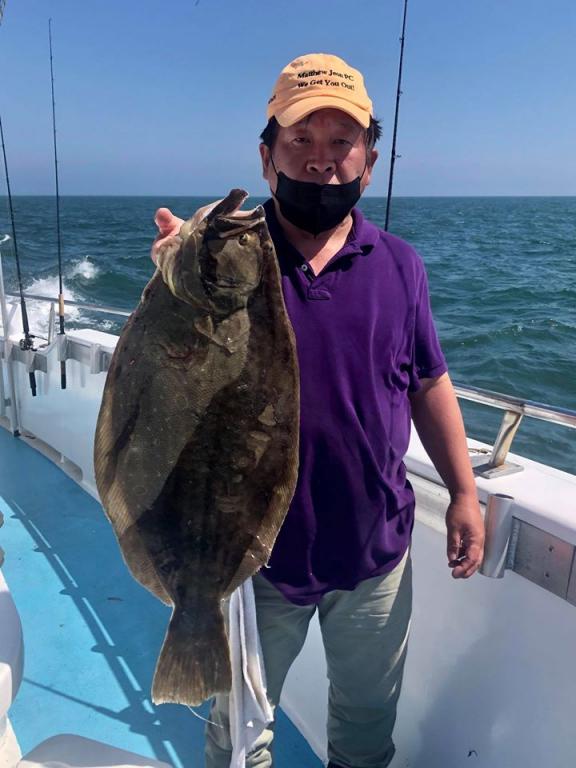 Onboard the Miss Montauk II today ~ Kang had today’s pool winning Fluke weighing in at 5.2 lbs ~ nice. Tough Fluke fishing today some nice SeaBass were in the mix.