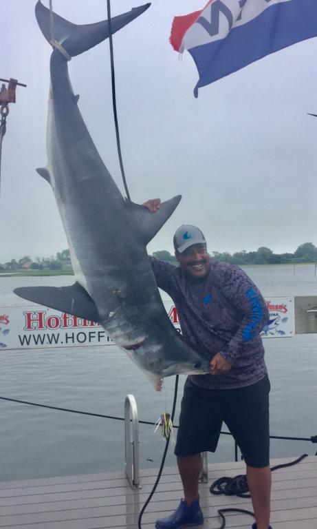 And John. Plan was to hit the canyons but with insane Action short of it had to stop! Had Tuna all over the surface Had 2 on first pass, had out over and under limit by 9am and Was in release mode. Decided to try a shark drift, half an hour In the right fish shows up. Battled her for about half an hour And had her tailroped. Back at Hoffman by lunchtime weighing In a nice 292lb Mako. After we celebrated having mako 3 different Ways at the Ark, what a way to end a great fishing morning!
