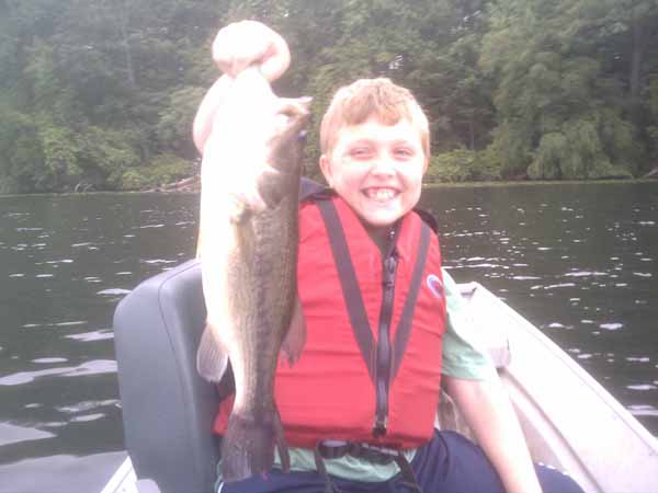 My son Garrett and I fished on Shepherd Lake yesterday. Not much action early in the afternoon, but it picked up around 5. We anchored about 20 yards off of the weed bed and live-lined shiners. Garrett caught this nice bass (about 5 lbs probably) and was a very happy boy. We also caught a bunch of pickerel and a couple of huge (I mean huge) bluegills.