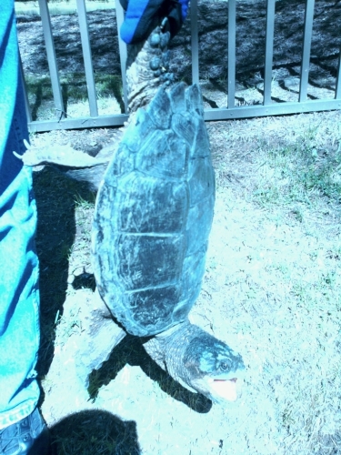 my wacky senko finally caught something...sort of. stopped at a spot I know at echo lake park on my way home from kenilworth and tossed my o-ring mounted wacky rig senko into a deep creek. no hit but my line starts slowly moving up the creek. I take in the slack and feel a thud. I had 30lb braid on so I started lifting and reeling down like you'd do for a tuna that's sounded. up from the deep comes about a 25lb snapper that snagged himself swimming by my rig. at first I wanted my worm back and considered grabbing him by the tail as you can see I've done in the past but as soon as he saw me he took off screaming my line out. I played him for about 20 minutes which was a great test for my rod, reel, and braid, got him next to shore and realized I had nothing to cut the line with.