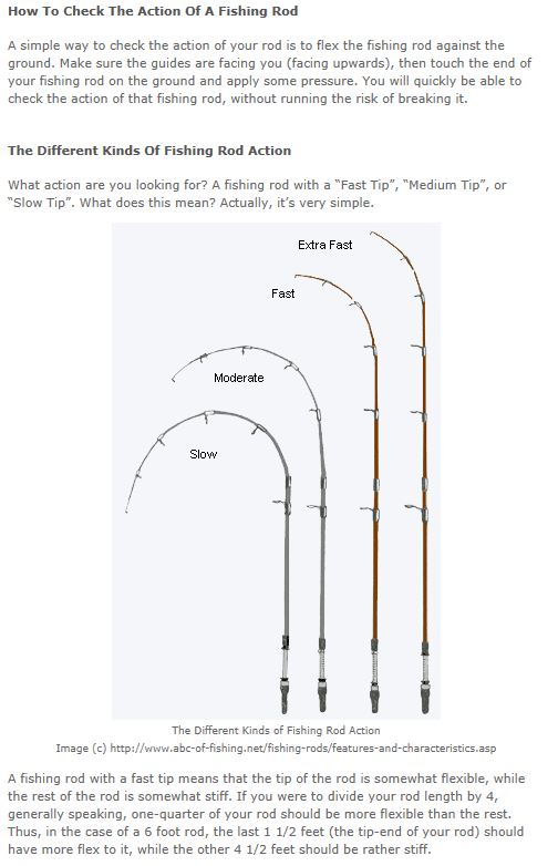Fast actually means a softer tip but faster to react once the hook is set since the rod loads faster, in other words it stops bending further up the rod and closer to the tip. Slow the tip is actually firmer but the rod is slow to load since it bends closer to the butt. Medium, is well....... Medium Do I have this right or am I confused ![]()