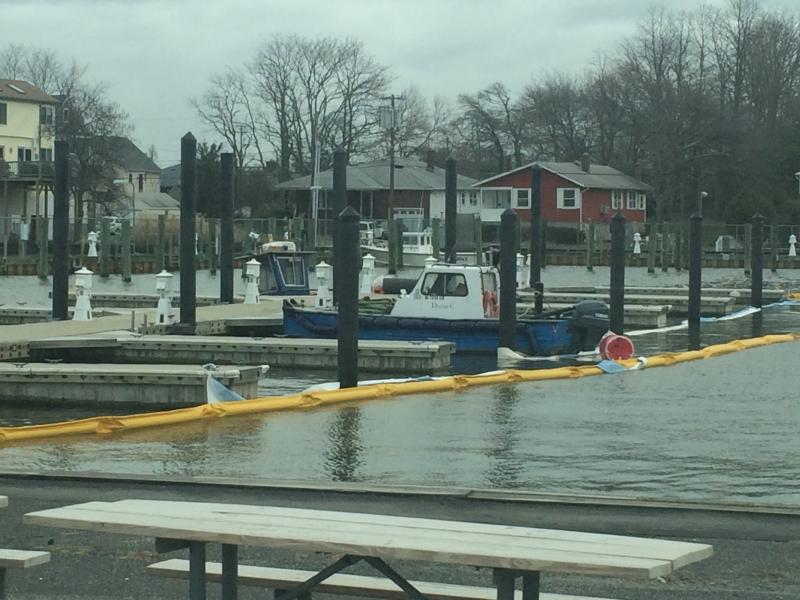 John - Not sure if you knew but there is a dredging project going on in Leonardo State marina... One of the work boats was tied up overnight in the marina during this most recent Noreaster and it apparently sunk in one of the slips. Not sure but that may have been the cause of the oil slick..