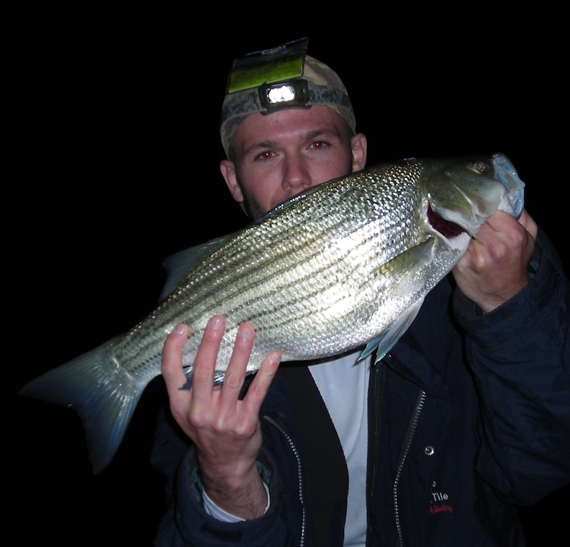Met up w Dale and we got to the lake around 1045 pm. Had a fellow NJF'er meet us at the launch--Chrisper! We shove off and start casting around 11 pm. 1st or second cast, Chris is into a fish lol... Nice 3-4 lb channel on a stick bait. Lil while after I get hit by a small 15" hybrid. Bit later, another 15" hybrid. Then a bit later, Dale hooks up with a picture fish around 20-21". Soon enough the fish were going bananas EVERYWHERE. I managed another in the 20-22" range about 45 min after Dale. We had a really slow pick until about 1:45 am when I managed to boat 4 more fish with the biggest being 24". Dale also added 3 more: a dink, a low 20" & a pig 24" fish as well. And Chris added 2 during the slam fest from 1:45 to just about 3 am. Dale and I used our go-to plugs, while Chris threw the box until he finally caved and took one of my spares. Once he put the lure on, he landed 2 fish in short order and a number of swings and misses. We all caught fish and we all missed fish... final tally: 7 wipers from 15-24" for me; 4 wipers for Dale from 10-24", and Chris with the kitty cat, and a set o briddies in the 17-20" range. Porn below. Notice how some of them have dope blue trim to their fins and faces... Not sure if that's a camera thing or a genetic thing... Great night on the GetANet II for sure!