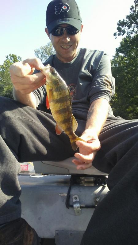 Today I hit the back part of the lake early and landed 2 yellow perch and 2 largemouth including my best of the year at 2.4 lbs. The smaller bass hit a natural color ribbon tail worm t-rigged in the weeds, big boy smacked a kinchou shad off a shallow point. Even made it home to see the 2nd half of Eagles beating the Skins. Great weekend! |
