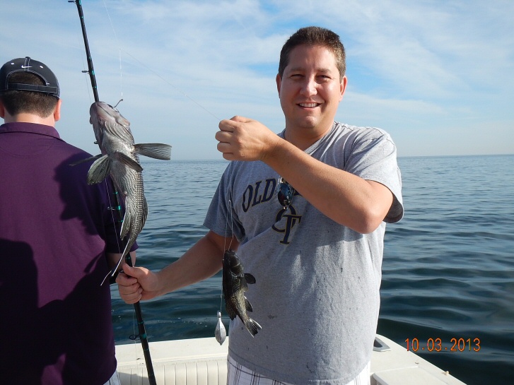 The Jeff Crystal charter joined Capt. Paul for a day of Seabass fishing. We got an early start and sailed into a windless calm ocean. Paul made several stops during the day, some held life while others were lifeless. With no wind, current or drift the Seabass were not very active. Shorts far outnumbered the keepers and the guys had to work hard to put a catch together. At the end of the day we had 41 nice Seabass in the box but overall it was tough fishing.