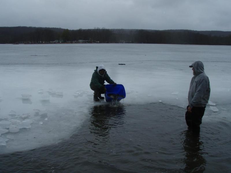 They stocked 225 brown trout in the lake (100 @ 14" - 15" & 125 @ 16" - 24") through 10" of ice.