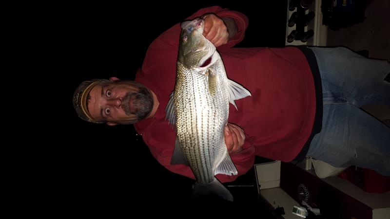 Jumped on with dale last night from 11pm to close to 2 am. Sporadic bite but put a decent catch together. 3 hybrids each to 24+" and I added a nice 3-4 lb largemouth to the tally. Some pics below.