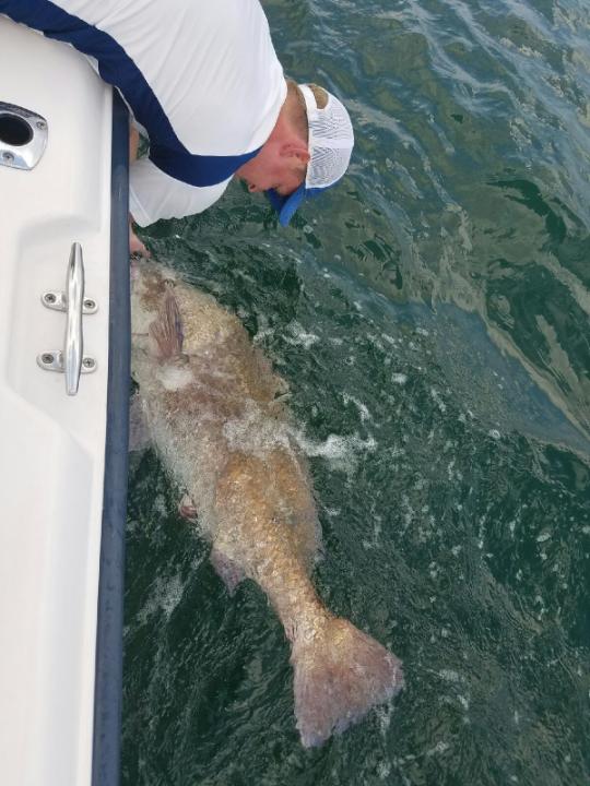 Good luck to everyone joining FE tonight! From the sounds of it the flat heads are going to have a feast to choose from. Eddie you're a good man for making the offer to everyone on the site. Good spots are hard to come by and harder to find, sharing that information is a generous gesture and representative of the kind of guy you are. I hope everyone appreciates your gesture as you don't often see things like that happen in our beloved sport. Looking forward to the reports from the rock, hope to see many smiling faces, personal bests and pictures of nice flat heads. For those joining Eddie, welcome to the cult! Your life will never be the same! Before you know it you'll be doing the same voodoo dance Chrisper did! Good luck guys, give em' hell, looks like you have a great night weather wise. I posted the attached pictures in the salt water forum but just wanted to get guys fishing tonight's adrenaline going to catch the big one. My son got caught this yesterday while we were fishing in a fluke tournament. Black drum, fought like a monster flat head. A few pictures and successfully released for someone else to experience a surprise of a lifetime! Hope someone gets one this big tonight! Good luck guys.....look forward to the reports.