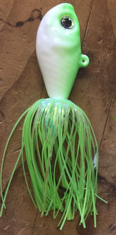 The price of fishing the sticky stuff is too high (I built several artificial reefs using Spros) so all I use now are unpainted jigheads tipped with Gulp! and Spearing. A teaser 12to14" above the jig is also tipped with Gulp! and spearing.