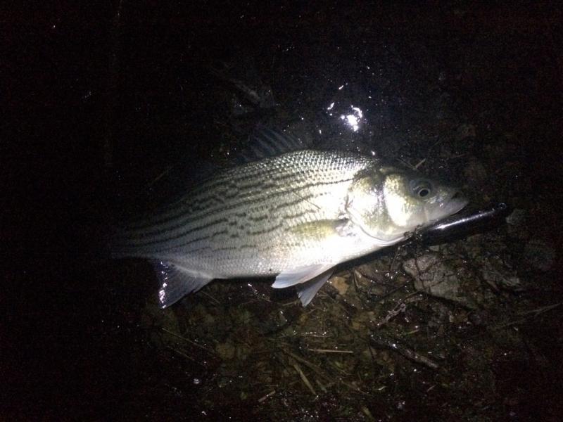 Its been too hot to fish during the day so took my first night trip Thursday. Fished 9pm to 3am. Pulled out 5 hybrids, lost two and had a bunch of blowups using topwater.