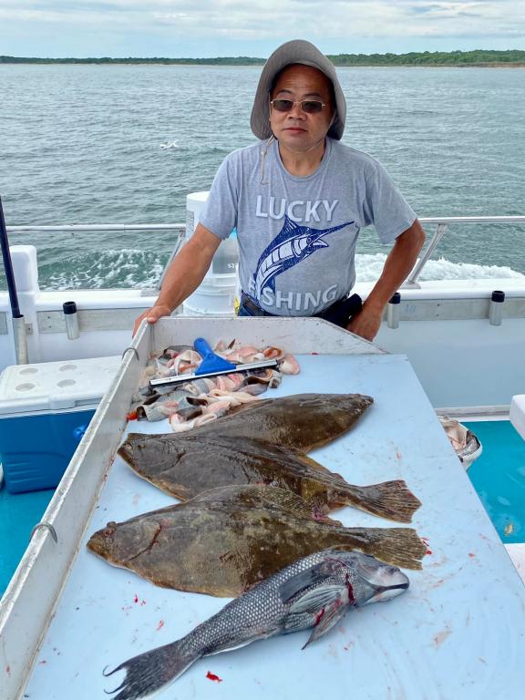 ![]() Onboard the Miss Montauk II ~ Peter Choi had today’s pool winning Fluke weighing in at 7 lbs ~ Sweet! Full Day Fluke 7am-4pm Daily $130 per Angler ~ LIMITED TO 45 ANGLERS by RESERVATION #631-668-1545