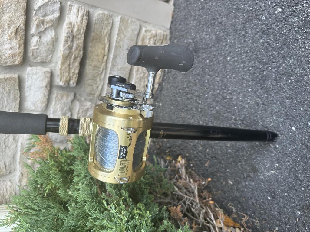 Shimano tiagra LRS 30w 2 speed on a 5’8” gloomis pelagic 40-60lb rod w/roller tip