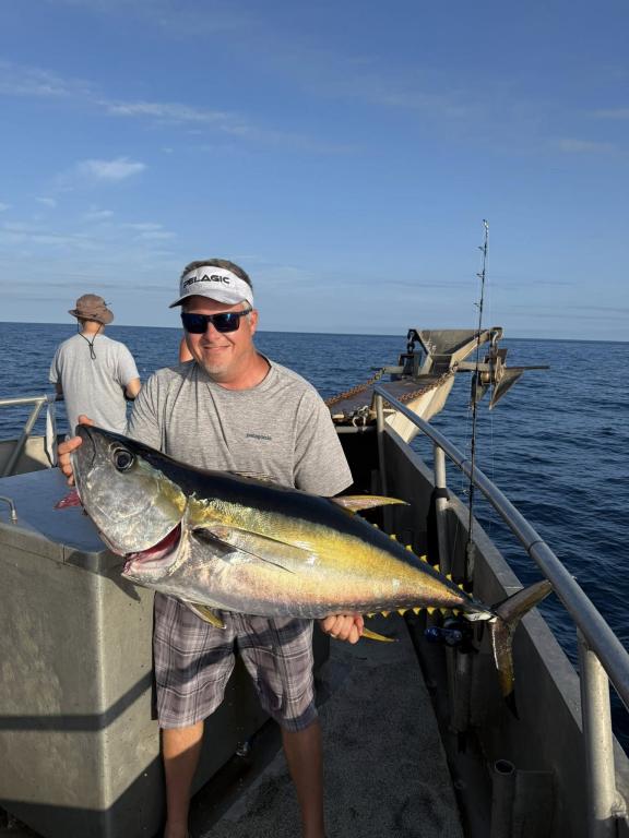 🎣 Shoutout to Michael Houdart, who limited out on yellowfin and even shared his 4th with a fellow angler! His go-to: a 200g Shimano Flat Fall jig. Other hot jigs included Streaker style jigs, chrome, and UVT options.