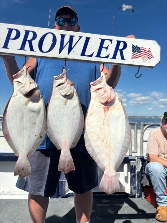By late morning early afternoon the fish started to bite and the fares onboard went to work. Handful of limits around the boat with Prowler Big Joe taking high hook with 4 keepers (orl). Tommy S. swept the pool with a nice fat 6.5lb flattie along with bagging his limit, ok short life and the usual boat limit with Sea Bass.