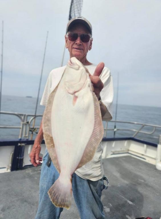 Hey gang, we had 15 people counting Capt. George for the last fluke trip of the season. We’ve been bouncing around, fishing lots of spots, deep water, mid water. So far nothing great 6 or 7 keepers with some shorts and the big sea bass again. Charlie started the day off with a nice 5lb fluke on a white gulp. So far that looks to be the pool winner, although making one more stop at the end of the day. As you can see in some of the pics the ocean was very nice today. It’s always sad when we have to stop fluke fishing. We want to thank all our fluke customers that came down this season to fish with us. Our next 2 trips will be for bottom fish 7:30 AM to 2:30 PM Saturday and Sunday. Then sea bass finally opens up Wed. October 1st. We’ll do that kind of fishing for a couple of weeks and then we will head to the shipyard for a week. Then hopefully the striped bass will be around the third week of Oct. Here’s a few pics from today. Thanks, Capt. Scott