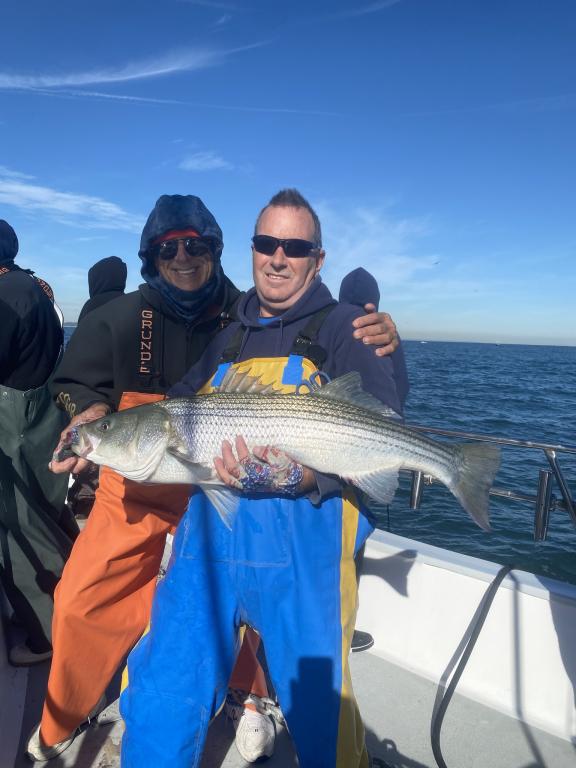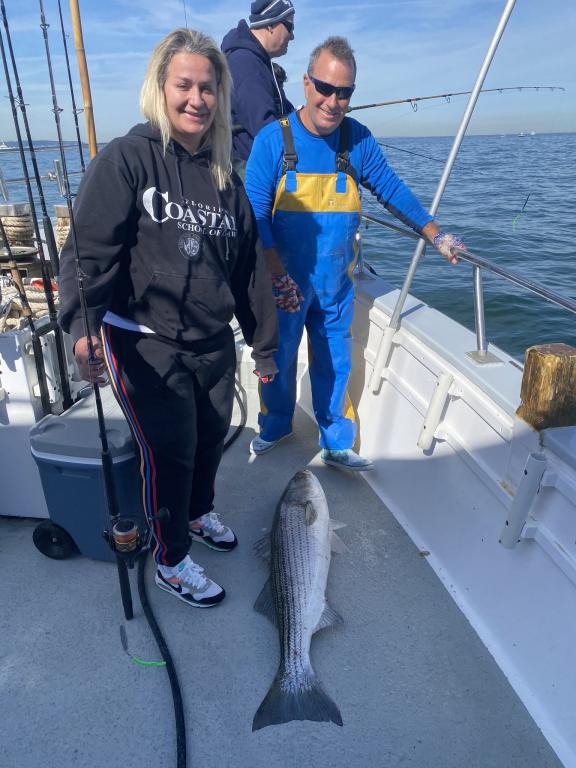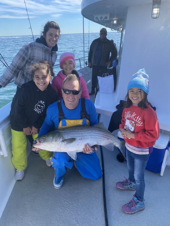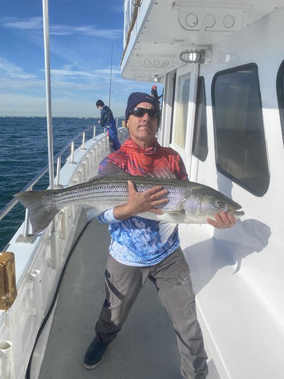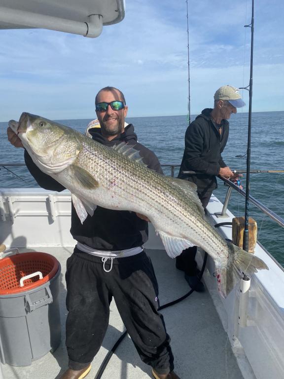 The STRIPERS were up on top today along with plenty of readings on the scope. We picked away on most drifts and tailed 2 oz. diamond jigs had the edge. The BASS were spread out over a wide area and all fish were over 31 inches and safely returned. Fishing will only get better into December so don't miss the action. Join us tomorrow as we head back out for another fun day on the water. Check the picture of Anthony with the big fish of the day at 48"! The GOLDEN EAGLE sails every day for STRIPERS & BLUES at 7:30 am from Belmar Marina in Belmar, NJ. For more information visit us at www.goldeneaglefishing.com or call 732-681-6144. |