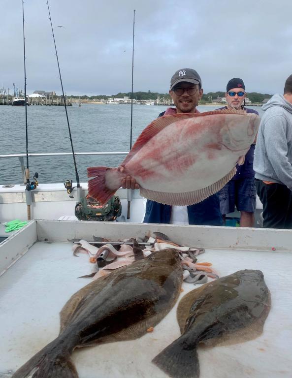 ![]() Onboard the Miss Montauk II today ~ Fong had today’s pool winning Fluke weighing in at 9.5 lbs ~ Awesome! It turned out to be a good day of fishing.