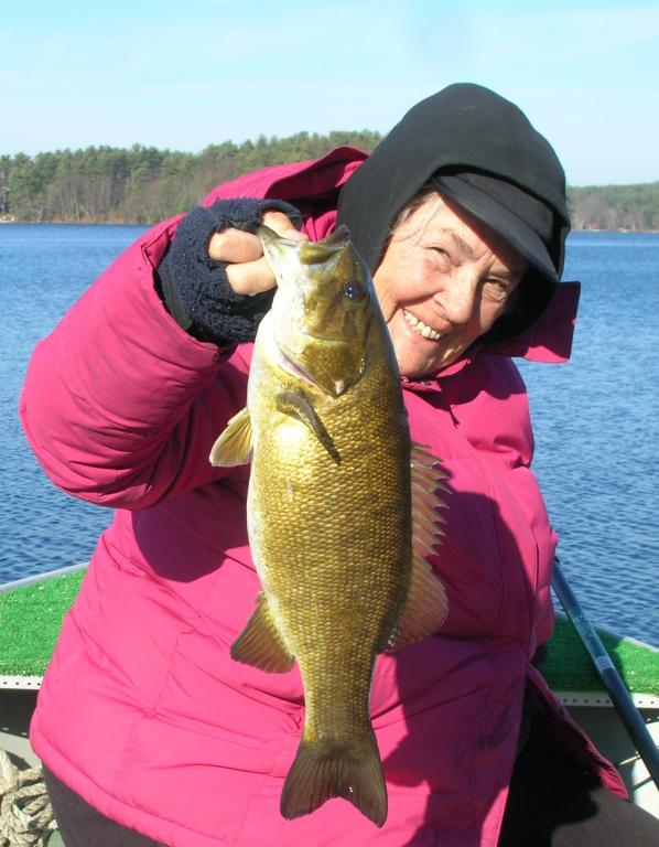 Thought I'd add a report, somewhat lackluster as far as catching but great weather and scenery in the shadows of the foot hills of the Berkshires. I've fished here as a kid on vacation back in the 50's.Thanksgiving time has been an annual trip for me since the late 60's and this time we had the lake to ourselves. We fished from about 12 to 4 Monday and Tuesday with water temps of 42 to 43 degrees and the rainbow trout (12 to 14") were active and one BT. Most of the action came from YP but only a couple of bass, I did take a better half SM shot.