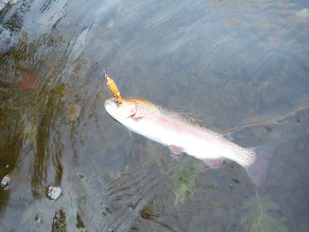 The trout are there if you're willing to work for them. The Flat Brook isn't exactly loaded with holding areas, so you have to seek them out. Seven fall-stocked trout were caught in four hours with a Panther Martin spinner (black with gold blade), Thomas spoon (1/6 oz. gold/red) and a small jointed Rapala.
