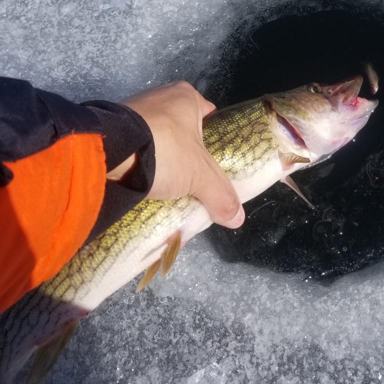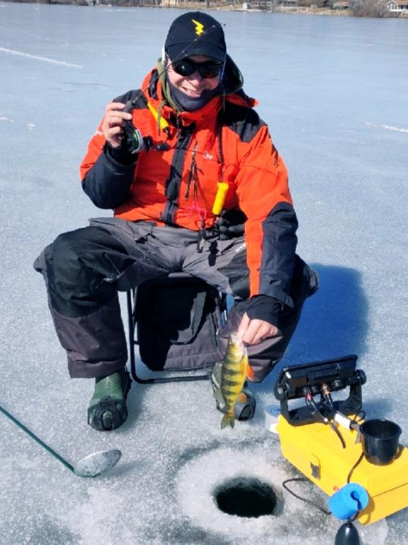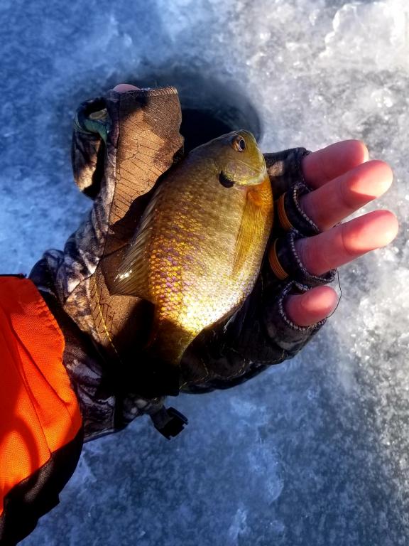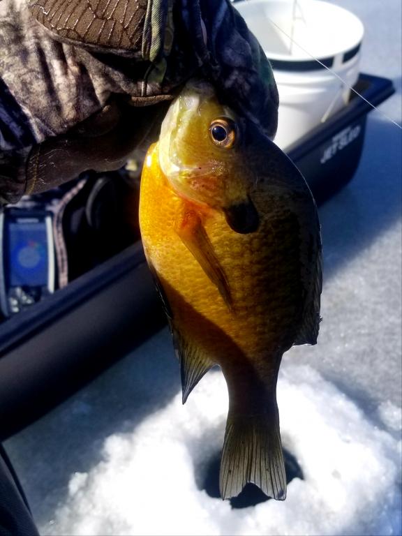 Today was a different day. Mid 20s n solid all around. Solid 5 to 6inches with a few small open areas in some back edges. It was hard to keep our holes from freezing over. We did Ok. 1 pickerel... 6 perch and 1 gill. One Slob perch was the highlight. We pretty much agreed that's the end for us this ice season. To a great 2022 ice season!! |