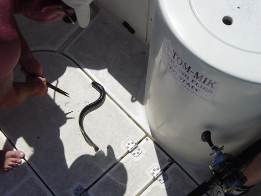 We used to "gig" these by the hundreds in the Raritan during the early 60's - they would come up river to spawn in the spring - the river bed used to by covered by their nests. As they swam upstream they would hang (suck onto) the spillway in Raritan - sometimes the entire width of the river - hundreds at a time. We would walk along the spillway and get them with large gigs, or large treble hooks attached to the end of broom sticks. And - saw many on large carp. We killed as many as possible to protect our fish. They still show up in small numbers - think poisoning efforts reduced their numbers. |