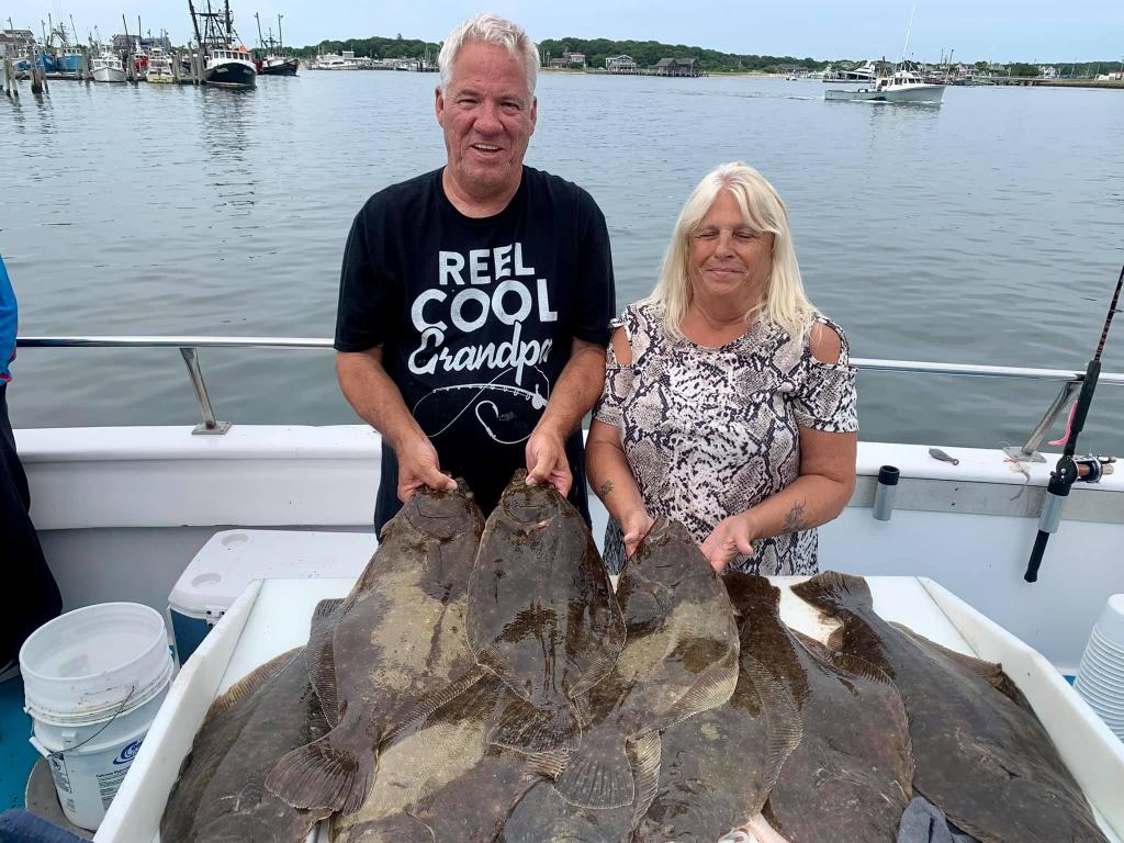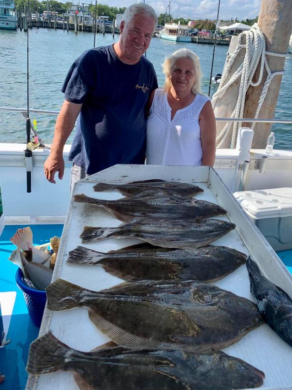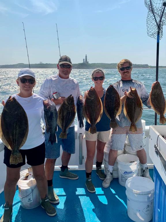 ![]() Onboard the Miss Montauk II ~ the Fluke fishing has been pretty good! Friday Keith had the pool. Saturday’s pool was tied, Miguel & Stan both had 9lbers ~ Awesome! Sunday Don had the pool winning Fluke weighing in at 8.1 ~ Sweet! We are Full Day Fluke Fishing Daily 7am - 4pm. Limited to 45 anglers ~ by Reservation #631-668-1545
