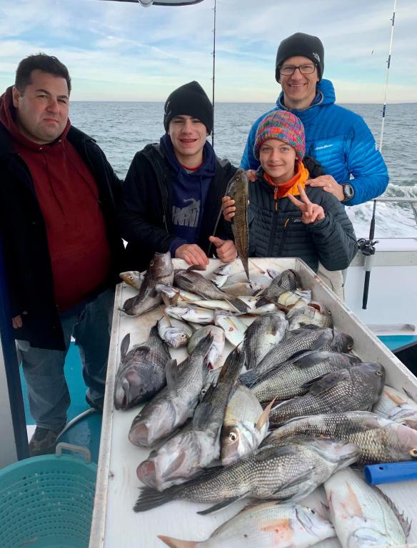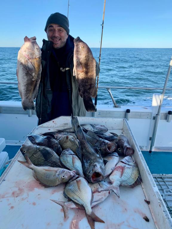 ![]() Onboard the Miss Montauk Sunday ~ a very good day of fishing with a Nice fall mixed bag! Daniel had today’s pool ~ 8.22lb BlackFish, he also had a 6.12lber ~ Sweet! Full Day Fall Fishing ~ BlackFish, SeaBass, Cod ~ 6am - 4pm, $140 per angler. LIMITED TO 30 ANGLERS by RESERVATION #631-668-1545
