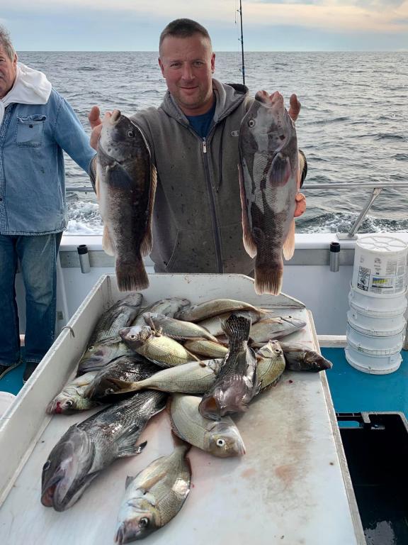 ![]() Onboard the Miss Montauk ~ a good day of fishing Friday! Nice mixed bag. Full Day Fall Fishing ~ BlackFish, SeaBass, Cod ~ 6am - 4pm, $140 per angler. LIMITED TO 30 ANGLERS by RESERVATION #631-668-1545