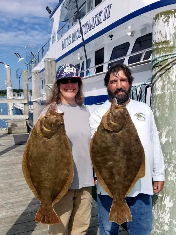 Onboard the Miss Montauk II ~ Ronni & Sal each had a DOORMAT today! Ronni’s weighed in at 11.78 lbs & Sal’s weighed in at 10.06 lbs ~ Fluketastic x 2! Very good fishing today! Full Day Fluke 7am-4pm Daily $130 per Angler ~ LIMITED TO 45 ANGLERS by RESERVATION #631-668-1545
