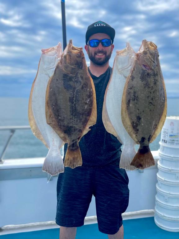 Onboard the Miss Montauk II ~ Friday Sal had the pool winning 8.5 lb Fluke! Saturday Nick had the 8 lb winner and Sunday Rob had the pool winner ~ way to go guys! Nice Fluke! Full Day Fluke 7am-4pm Daily $130 per Angler ~ LIMITED TO 45 ANGLERS by RESERVATION #631-668-1545