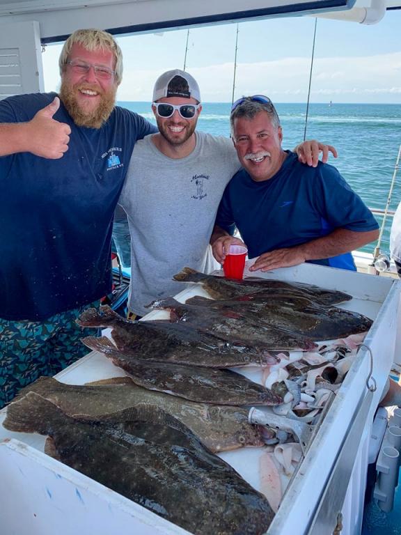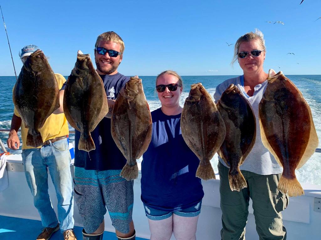 8-5 ~ Shannon had today’s pool Fluke weighing in at 8.46 lbs ~ Awesome! Very good Fluke Fishing! 8-6 ~ friends Artie & Don tied for the pool with Fluke both weighing in at 7.4 lbs & limits ~ Very Nice! Some caught really well others so/so. 8-7 ~ today’s pool winning Fluke weighed in at 9.5 lbs ~ Sweet! Good Fluke fishing today! 8-8 ~ Ra had today’s pool winning Fluke weighing in at 8.2 lbs ~ Very Nice! Tough conditions today, but most went home with fish. 8-9 ~ Mike had today’s pool winning Fluke weighing in at 9.3 lbs ~ Awesome! A pretty good day of fishing! 8-10 ~ A Very good day of fishing today!! Vinny had today’s pool DOORMAT weighing in at 10.7 lbs, he beat out the other 10 lb DOORMAT ~ Fluketastic! There were 5 other 9 lbers onboard as well! With tough conditions anglers really did an Awesome job! 8-11 ~ Kim had today’s DOORMAT Fluke weighing in at 11.28 lbs ~ Fluketastic!! Some of the other great Fluke were Hiro’s 9.7, Brian’s 9.5, & Kevin’s 9.4 ~ great job! Really good fishing! 8-12 ~ Congratulations to Lyn who caught this FLUKETASTIC DOORMAT FLUKE weighing in at 14.18 lbs!!!! 8-14 ~ Mr Lee caught his 2nd DOORMAT FLUKE this year weighing in at 11.28 lbs - Awesome!! 8-15 ~ Mike had today’s pool winning Fluke weighing in at 8.42 lbs ~ Sweet! Tough conditions but anglers made the best of it. Full Day Fluke Daily 7am - 4pm ~ Open Boat For Daily reports please visit us on Facebook or instagram www.missmontauk.com #631-668-1545 |